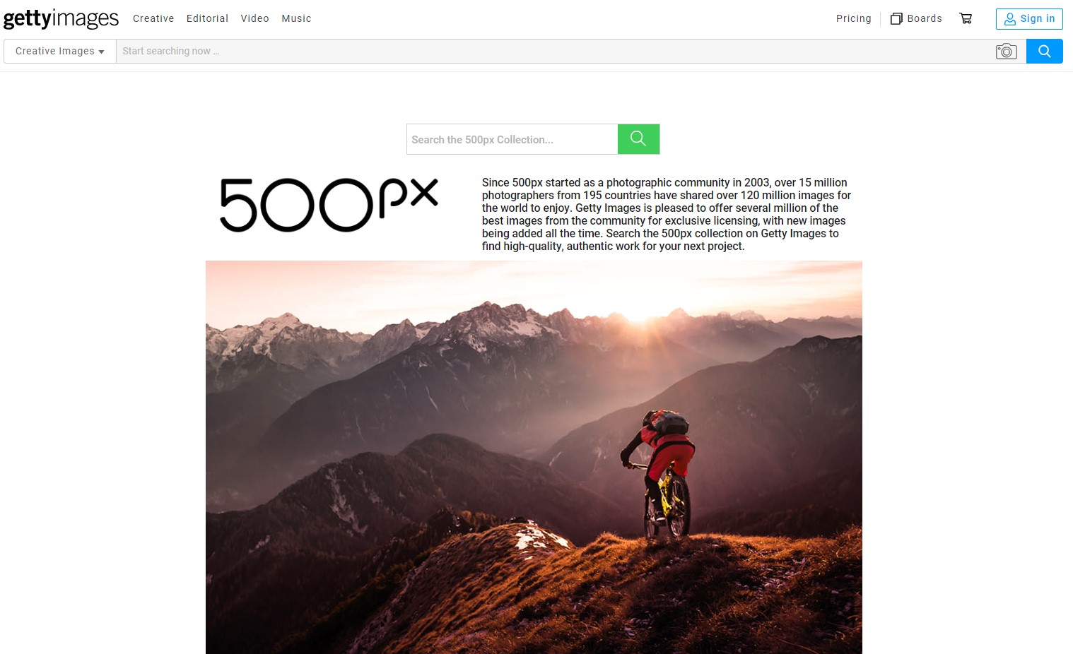 500px är en av världens främsta fotosajter där duktiga fotografer från hela världen skickar upp sina bilder för att visa upp dem för likasinnade. En del av innehållet som fotografer skickar upp är dessutom tillgängliga för försäljning genom en bildbank som tidigare kallats för Prime. Numera säljs Prime-kollektionen genom den största bildbanken i världen, GettyImages.