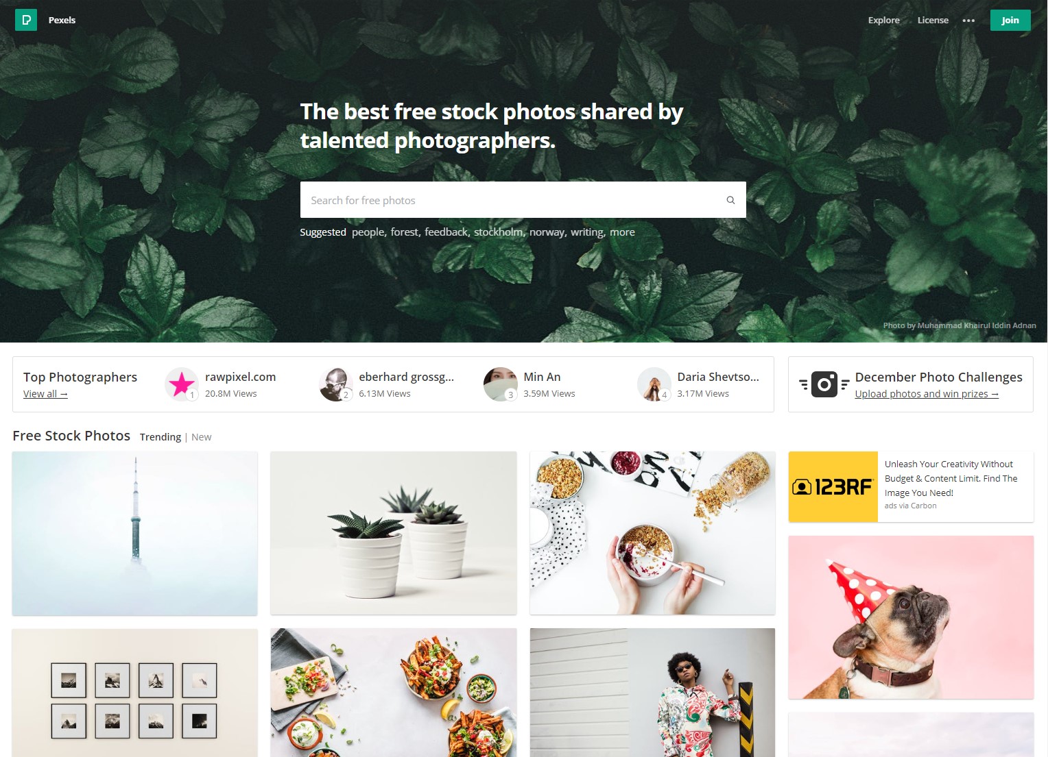 Pexels tillhör den nya generationens bildbanker  i den meningen den bygger på andra bildbankers foton men är manuellt utvalda. Endast de bästa bilderna platsar här. Bilderna på Pexels är gratis att använda och samlas in från bland andra systersajterna Pixabay, Gratisography och Little Visuals.