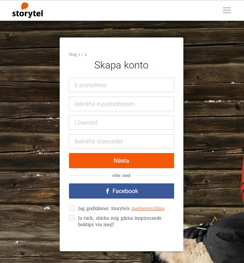 Storytel och många andra företag erbjuder snabbregistrering med Facebooklogin. Ett smart sätt att be om personens kontaktuppgifter och som också som leder till fler registreringar. Liknande registreringar går att göra även med LinkedIn, Twitter och Google +.